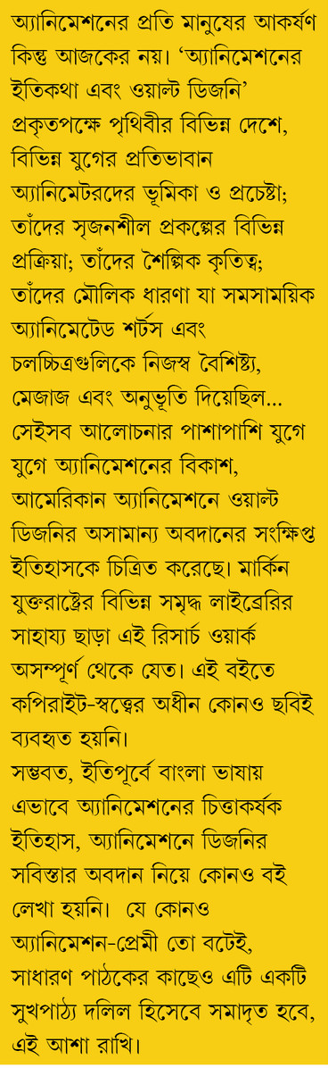 To date, such an engaging and in-depth exploration of animation’s rich history and Disney’s lasting impact has rarely been attempted in Bengali. Whether you are a devoted animation enthusiast or a curious reader, this book promises to be a delightful and insightful read.