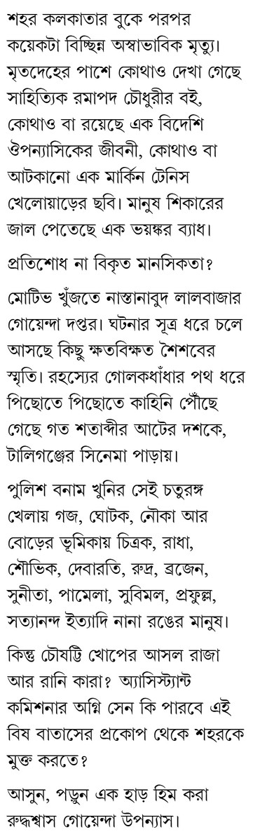 Kolkata is shaken by a string of strange, disconnected deaths—each scene leaving behind a chilling clue. A Ramapada Choudhury book beside one body. A foreign novelist’s biography near another. Elsewhere, a photograph of an American tennis star. Nothing seems to match… except the feeling that someone is hunting with intent.
